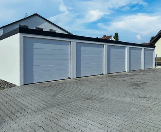 Die Garagenanlage besteht aus insgesamt 12 Garagen, darunter eine 3er, 4er und 5er Anlage. Besonders hervorzuheben sind die höheren Sektionaltore der 5er Anlage mit einer Höhe von 2,25 m. Alle Garagen verfügen über Trennwände, Sektionaltore und isolierte Dächer.