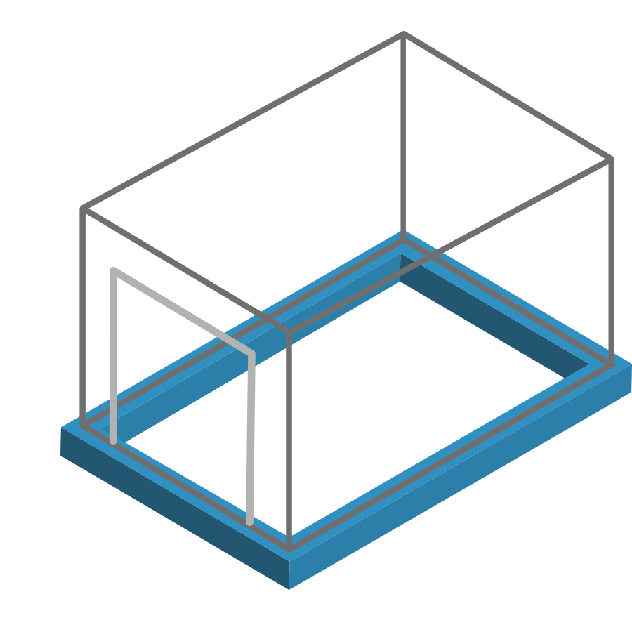 Das Fundament sollte immer aus einer ebenen Fläche bestehen und kein Gefälle haben, genauso wichtig ist, dass das Fundament rechtwinklig ist.